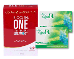 ネオサイト14激安ケア用品セット使い捨てコンタクトレンズケア用品セットネオサイト14激安ケア用品セット■セット内容: ●ネオサイト14×2箱 (左右各1箱6枚づつ) メーカー:アイレ(旧:荒江光学) 医療用具承認番号:21600BZY00543●バイオクレンワン2in1パック×1箱 (約3ヶ月分、レ