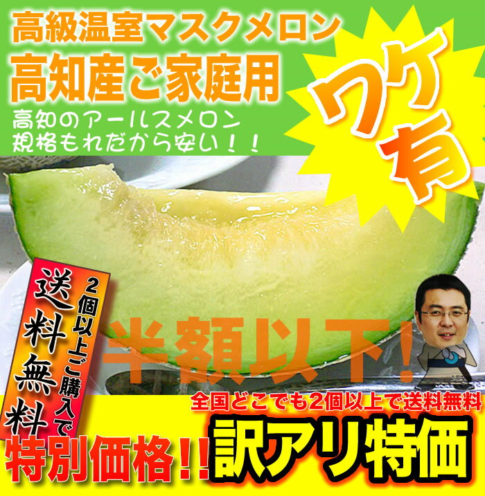 高級温室マスクメロン!高知産:ワケ有りご家庭用高知のアールスメロン規格もれだから安い!!1玉1.3キロ以上!2玉以上購入で送料無料! 日にち指定不可 送 料 2個購入で全国送料無料 賞味期限 お早めにお召し上がり下さい (保存の条件により異なります。) 保存方法 常温保存 お支払い方法 クレジットカード/銀行振り込み/商品代引きの中からお選びいただけます。 配送方法 普通便( (更新日時:2011/06/23 23:14) Supported by 楽天ウェブサービス |