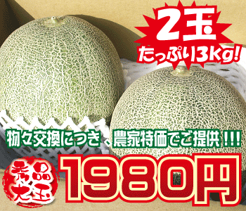 【送料無料】【日原メロン】北海道 夕張日原メロン(最高級品)中2玉 【楽ギフ_のし宛書】 メロン一筋50年余。日原農場が丹念に、そして細心の手間をかけて最高級のメロンを作り上げました。夕張メロンを越える甘さと美味しさです。夕張メロンと同じ品種ながら夕張農協を通さないため、違う商品名で流通しています。農協を通さないため、早めに収穫しなくても良く、完熟してからの苦味も無く、「夕張キング」本来 (更新日時:2011/06/23 23:14) Supported by 楽天ウェブサービス |